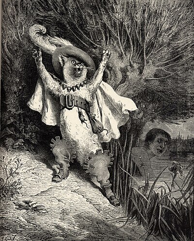 Le Chat continua ainsi, pendant deus ou trois mois, à porter de temps en temps au roi du gibier de la chasse de son maitre. Un jour qu’il sut que le roi devait aler à la promenade, sur le bord de la rivière, il dit à son maitre : « Si vous voulez suivre mon conseil, votre fortune est faite : vous n’avez qu’à vous baigner dans la rivière, à l’endroit que je vous montrerai, et ensuite me laisser faire. »